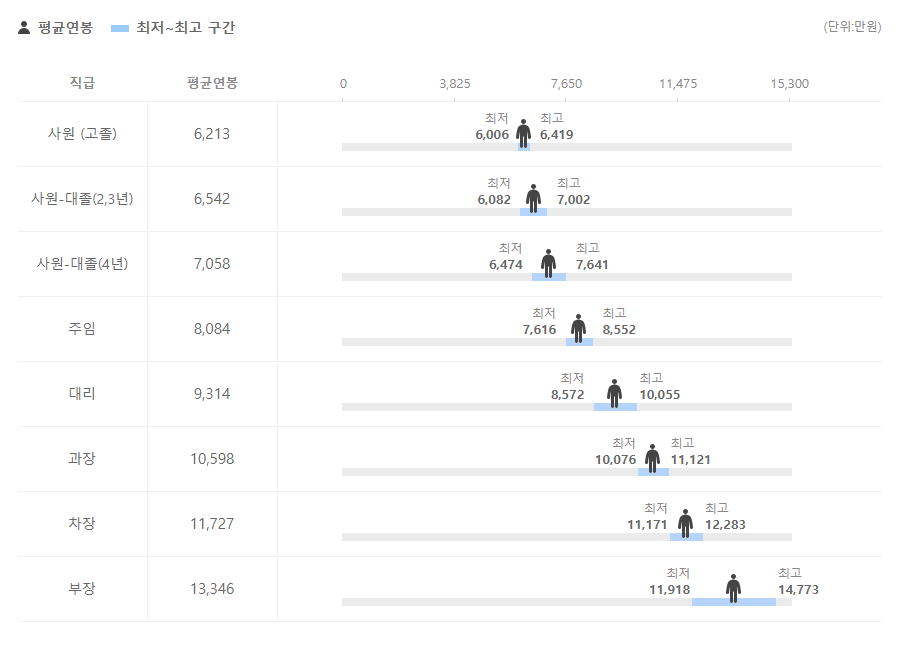 신입 평균 연봉(원티드 대졸 평균 6,185만원)
