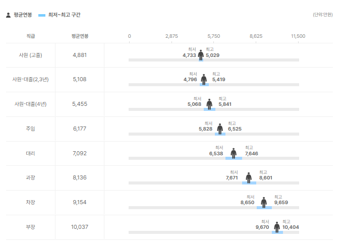 신입 평균 연봉(원티드 대졸 평균 3,953만원, 사람인 4,185만원)
