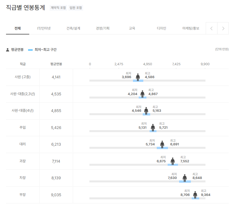 (블라인드 기준 평균 1,000만원, 범위 318만원 ~ 3,042만원)
