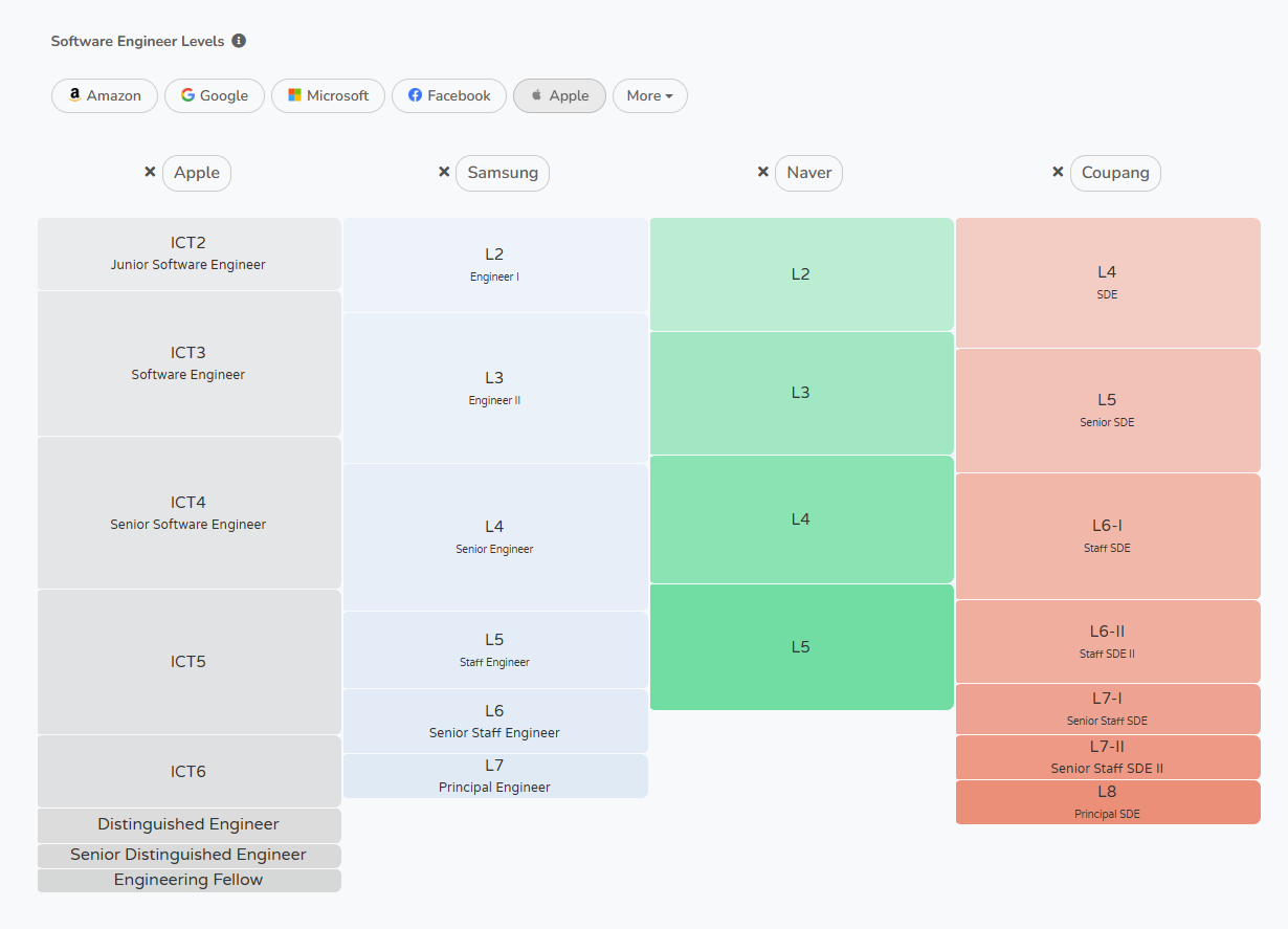 | 6-8년 | Senior Software Engineer (ICT4) | $160,000 - $270,000 |