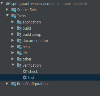 인텔리제이 오른쪽 위에 [Gradle] 탭 클릭합니다. [Tasks -> verification -> test]를